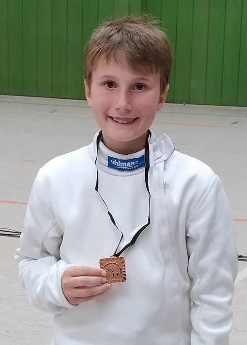 Am 13.05.2023 fand in Gießen im Anschluss an die Turnierreifeprüfung ein Gauturnier statt. Zum einen hatten hierbei Fechter, die noch keine oder wenig Turniererfahrung hatten, die Gelegenheit, Wettkampfluft zu schnuppern, zum anderen diente es den erfahrenen Fechtern als gute Gelegenheit, um sich auf die Deutsche Meisterschaft vorzubereiten. Joshua Tomschi vom TV Langen nahm zum ersten Mal an einem Turnier teil und holte sich gleich die Bronzemedaille! In der ersten Runde schaffte er es mit zwei Siegen und zwei Niederlagen ins Halbfinale. Hier zeigte Joshua sehr gute Aktionen und Selbstbewusstsein, musste sich aber seinem Gegner geschlagen geben. Über den 3. Platz kann sich Joshua sehr freuen. Weiter so!